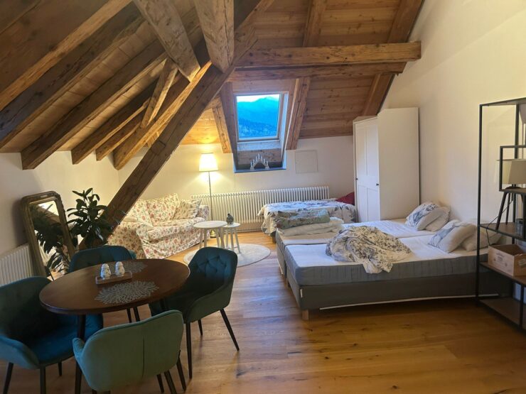 Ребят, мы выкупили для вас целый отель! Где будем вместе тусить, узнавать друг друга, много общаться, танцевать и отрываться. В доме есть опенспейс, большая кухня, очень много комнат, а также отдельные апартаменты для пар и укромные места для твоих митов или тишины. На этаже под землей созревают легендарные фондю и раклет из молока альпийский коров. Рядом на полках стоит вино с местных горных виноградников. Все это возможно будет продегустировать на специальном авторском ужине который приготовит нам владелец отеля.